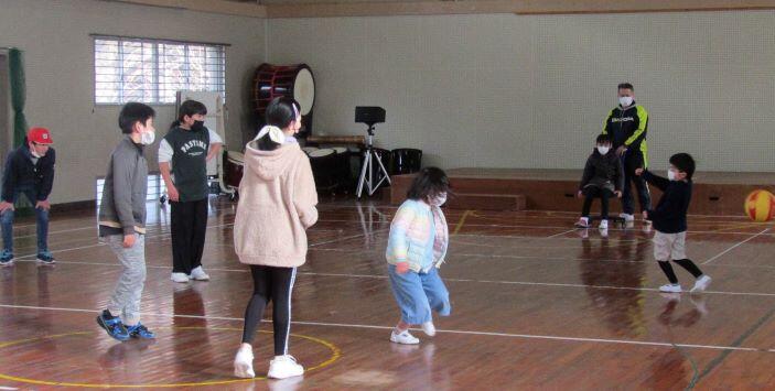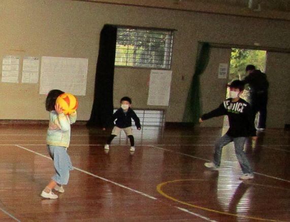 はじめは、みんなで遊びます。内容は6年生が希望した「ドッジボール」でした。