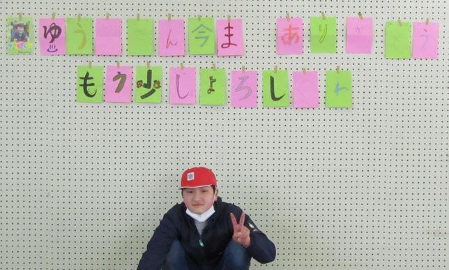 “ゆうやさん 今まで ありがとう もう少し よろしくね” となりました。カードの裏にはその文字を書いた人から6年生に向けてメッセージが書かれています!