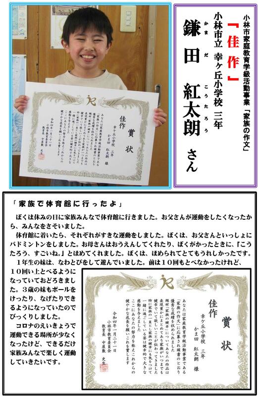 1月21日 小林市教育委員会 家族の作文 「佳作」(3年鎌田紅太朗さん).pdf