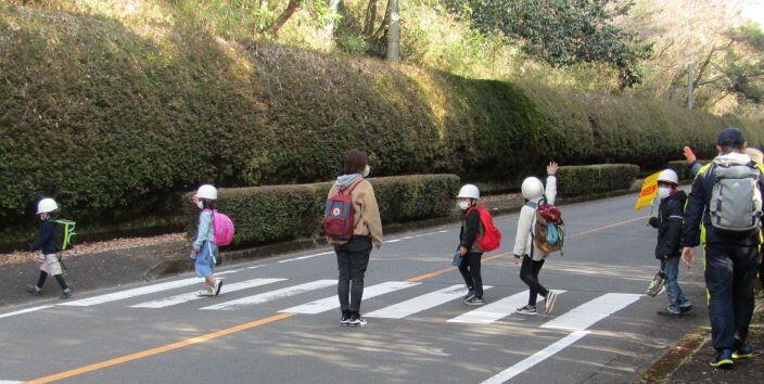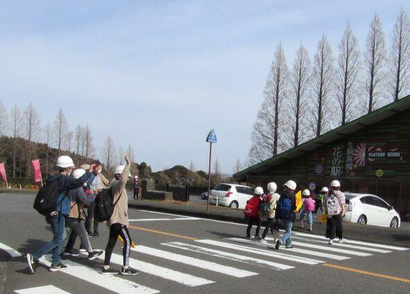 途中で横断歩道を渡ります。ルールを守って・・・「右、よし!左、よし!・・・」