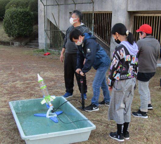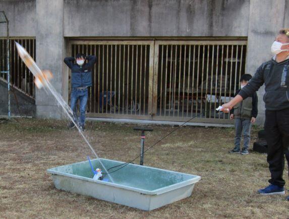 空気を入れます。よいしょ、よいしょ・・・。 準備完了! 3・・・、2・・・、1・・・、発射ーっ!