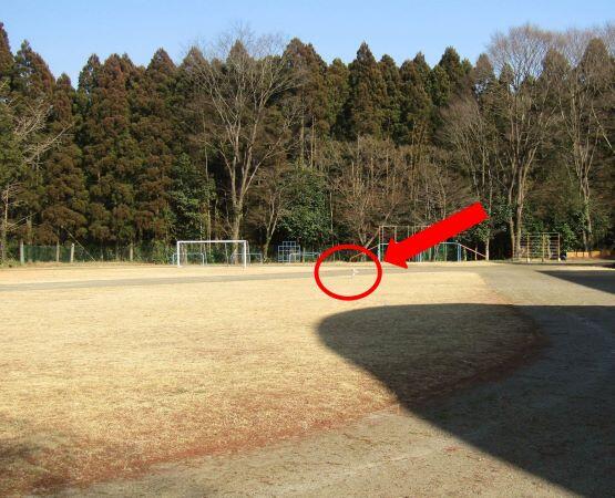 赤丸の所まで飛びましたよ!結構、飛びました!走って取りに行きます!