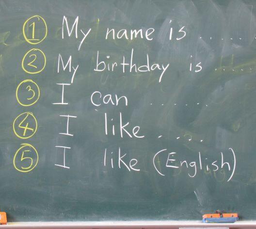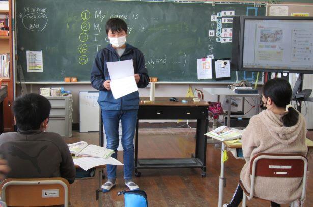 次は5・6年生です。自己紹介をしていました。①~⑤までを考えて、英文にします!(^o^) さあ、好きなものは何かな?好きな教科は?
