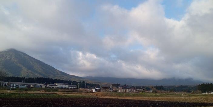 先週末あたりから気温があがり、暖かくなってきました。この日の朝の幸ヶ丘三岳です。前夜の雨が残っていたようで、韓国岳と甑岳には雲がかかっていました。
