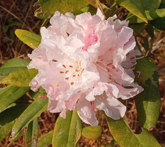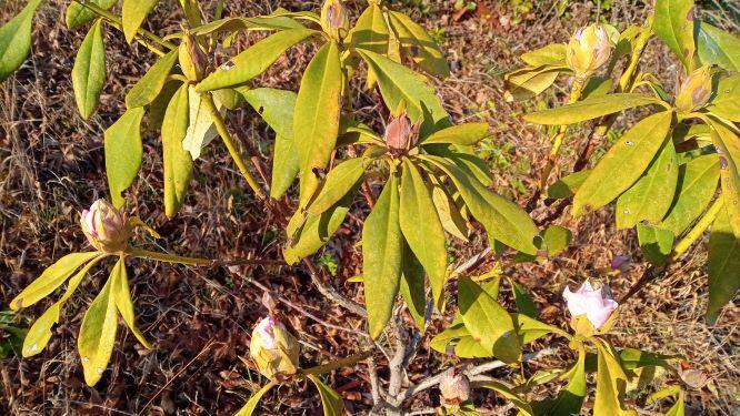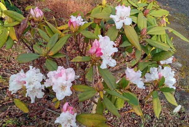 さて、校内ではシャクナゲが咲いていました。下の左は先週のもので、右はこの日のものです。