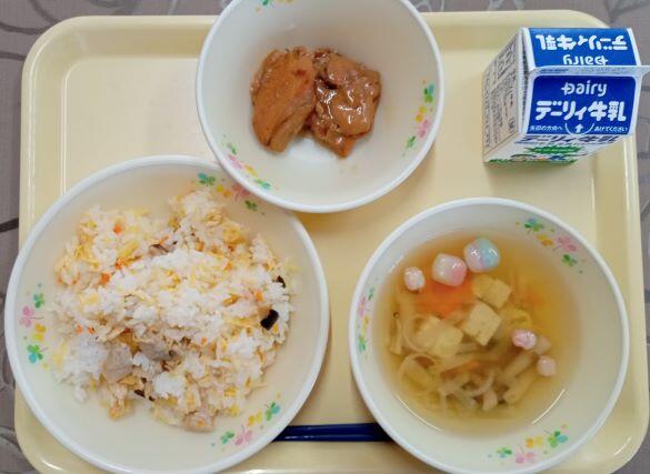 さて、この日は県内の公立中学校では、卒業式がありました。中学校生活の大半をコロナ禍の中で過ごした生徒達、彼らの胸には様々な思いがあることでしょう。withコロナの生活はまだまだ続きそうですが、夢や希望をもって自分が決めた道を進んで行って欲しいと思います。卒業、おめでとう!(*^_^*) ということで、前日の給食のメニューは ちらし寿司、チキンの照り焼き、お祝いすまし汁 でした。