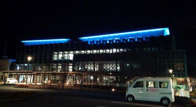 話は変わりますが、下の写真は小林市役所のライトアップの写真です。何の・・・?実は、全国自殺対策強化月間・西諸地域自殺予防週間の取組の一環として、自殺予防対策が社会全体の共通認識となることを目的にしたライトアップです。ブルーは心を癒やし、コミュニケーションを助け、人の輪に入りやすくしてくれる「コミュニケーションの色」だそうです。コロナ禍で自ら命を絶つ人も多くなっているとききます。身近な人たちの変化等に気付き、手をさしのべていきたいものですね。ライトアップはこの日(16日)までだそうです。※青はウクライナの色にも通じますね、侵攻によって命を落としたり、苦しく、不安な日々を過ごしたりしているウクライナの人々へ想いを馳せたいですね。