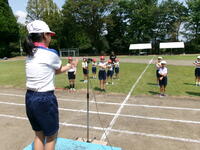 【9月3日】 運動会に向けての運動場での練習が本格的に始まりました。暑い中での練習は、立ってじっとしているだけでも大変です。初めての練習でしたので、体調は大丈夫かと心配しましたが、みんな元気に練習に取り組んでいました。指先まで伸ばして立つ、話している人をしっかり見て話を聞く、てきぱきと動くなどなど、どれもしっかりできていてびっくりしました。