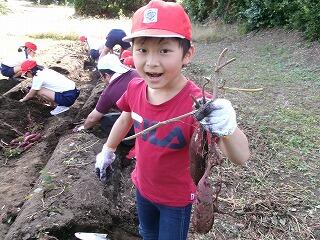 10月24日(火)に子ども農園で育てたサツマイモのいもほりをしました。