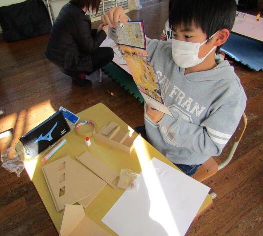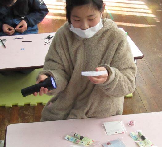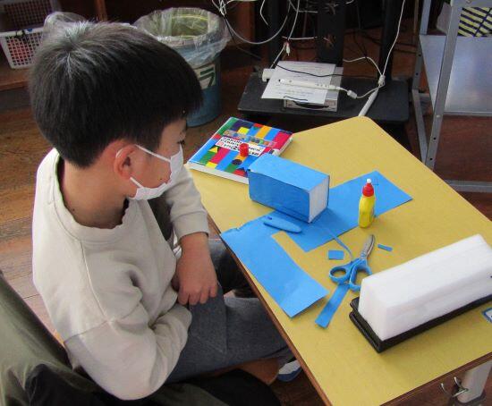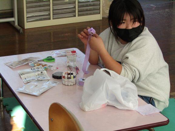女の子は飾り物でしょうか?リボンを巻く4年生、ライトを当てると固まる物で作っている5年生。男の子は模型作りです。
