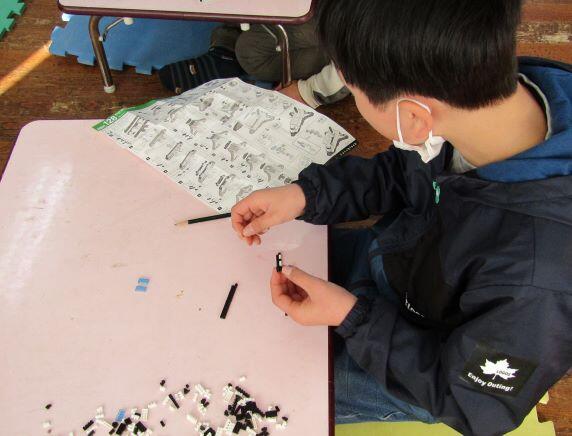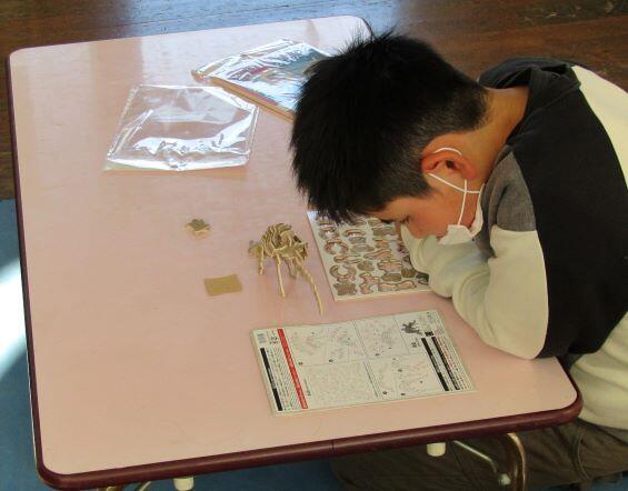 恐竜を作っている5年生、6年生はちっちゃな部品を組みあわせて作っています。※神経が出そうです。(^^)/