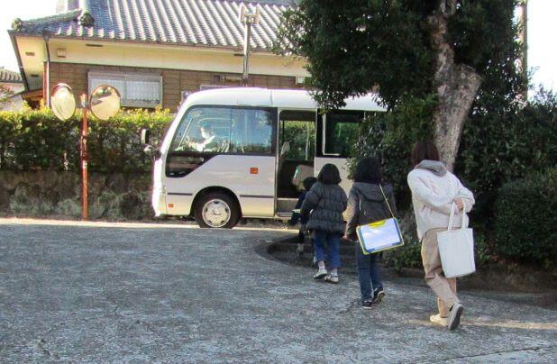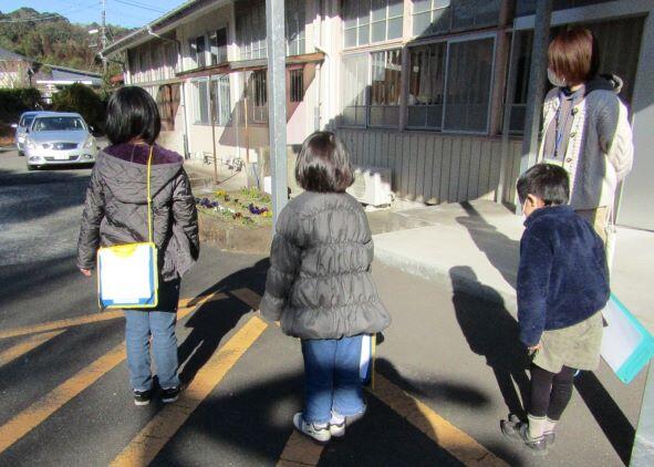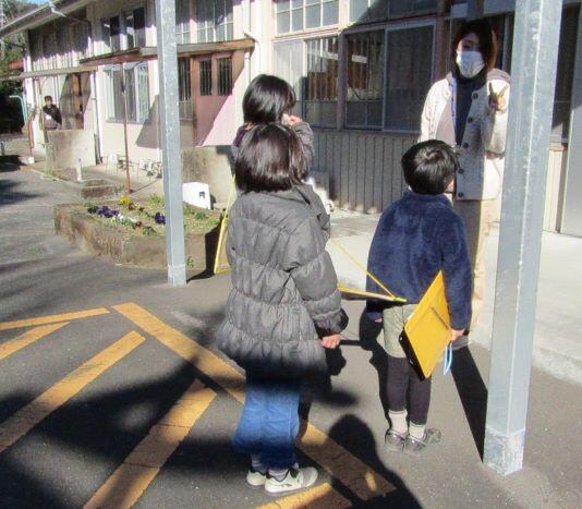 さあ、出発です!遠くで教頭先生もお見送りしています。教頭先生にも、“いってきま~す!”(^^)/