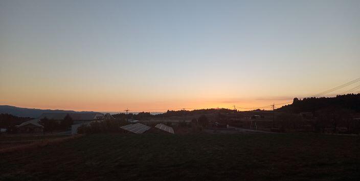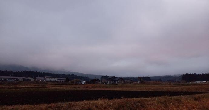 東の空もご覧のようにお天道さまは見えませんでした。しかし、赤みがかかった空は何だかきれいに思えました。(^^)