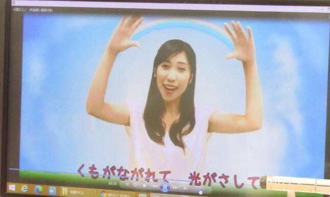 担当の先生の指揮に合わせて、手話をしながら歌います。♫見上げて見れば~♪の場面ですね。(^^) それと最後の所かな?