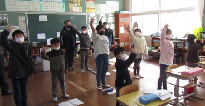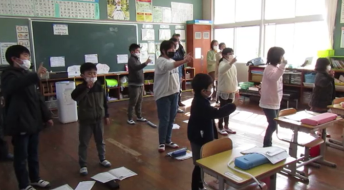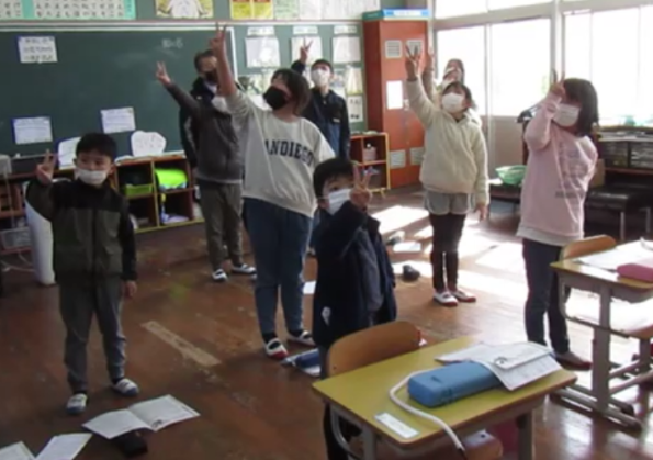 次は合唱の練習風景です。子どもたちが目をつぶっていますが、テレビを見ないようにです。手話の練習です!(^_^)