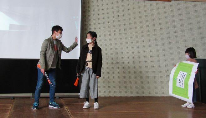 終わりの言葉は3年生の担当です。 10人全員で創りあげた学習発表会でした。