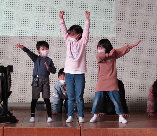 どうしたのでしょう?1・2年生が、変身ポーズをとっています!何に変身するのでしょうか?(^_^;)