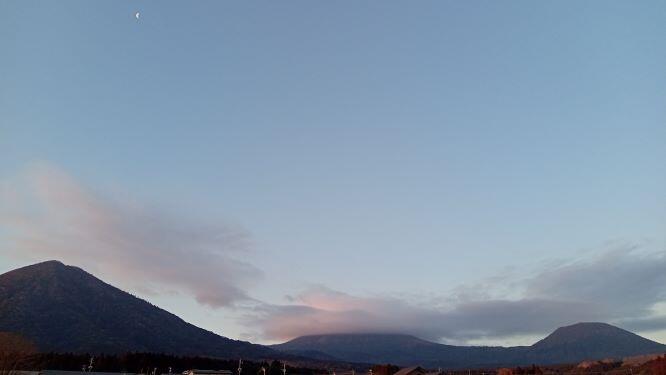夷守岳の上の方に、月が出ていました。先日までは満月でしたが・・・。