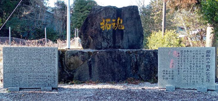 公民館の敷地内には開拓の碑がありました。左側は30周年、右側は60周年の記念碑です。
