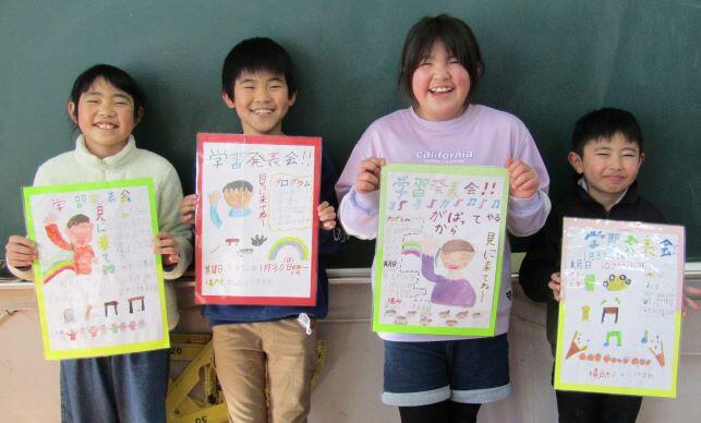 さて、学習発表会が近づいています。3・4年生で図工の時間に、「学習発表会」のポスターを作りました。作っただけ