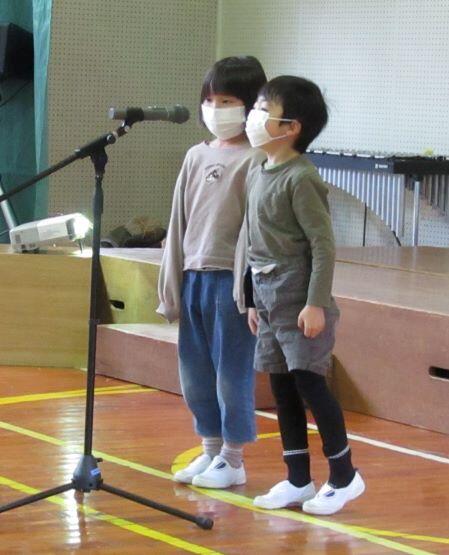 進行役の4年生です。はじめの言葉は1年生の担当です。元気よく言えました!(^_^)