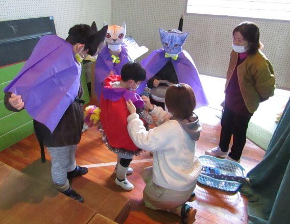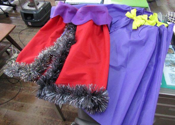 劇にはたくさんの小道具がありました。山猫のマントは先生方がリボンや飾りを付けてくださいました。