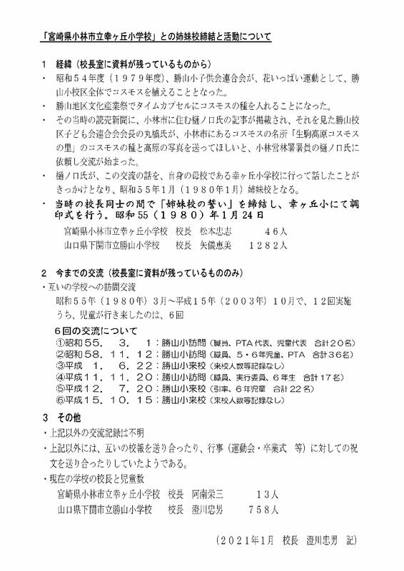 勝山小のホームページも是非、ご覧ください。ここからでも⇒下関市立勝山小学校(昭和55年姉妹校締結)
