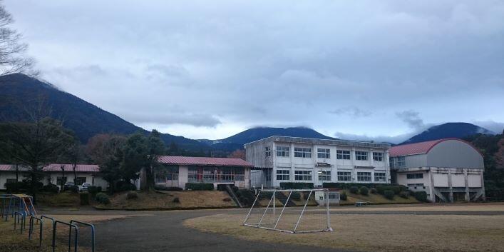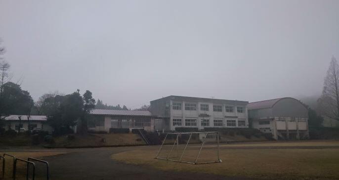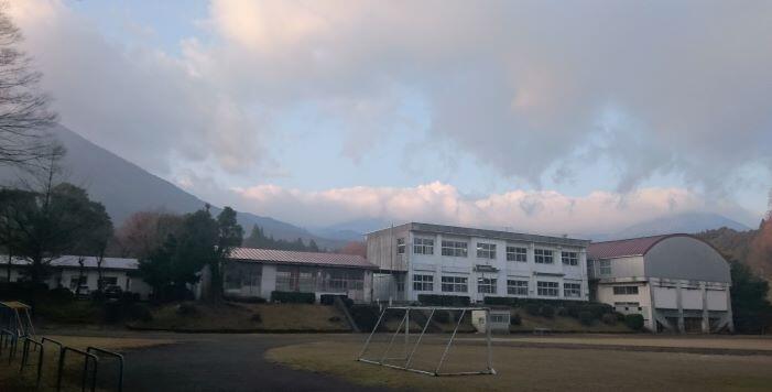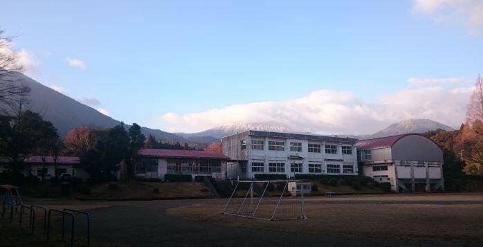 この日の朝の幸ヶ丘三岳です。韓国岳は真っ白でした。体育館の屋根にも白い物が見えます。学校に着いたら白い物が