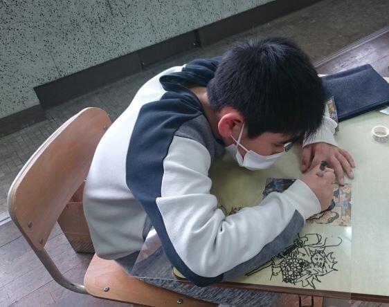 やっていました。絵を下に敷いて上からなぞっていく子もいれば、フリーハンドで、頭に浮かんだイメージだけで描く