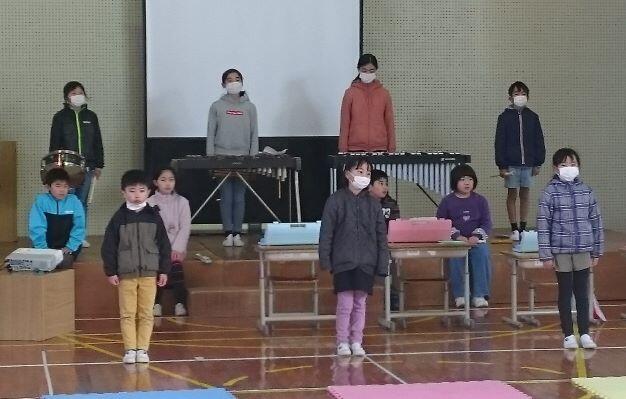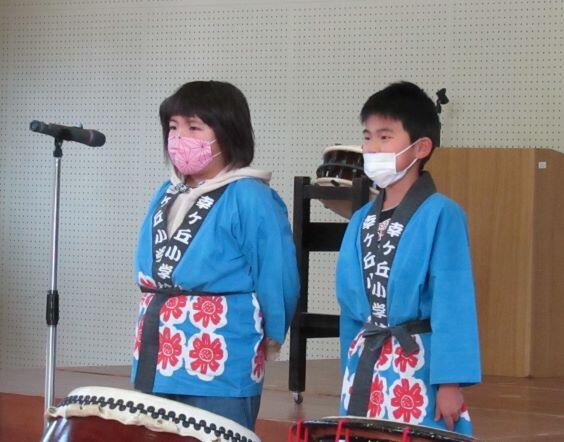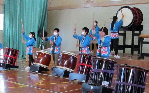最後は太鼓の演奏です。全校児童が力強く叩きました!6年生にとっては最後の演奏になるかもしれません。太鼓を叩いた