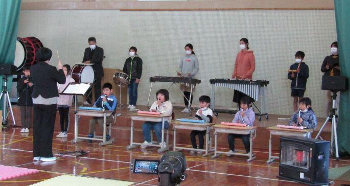 見ながら作られるそうです。幸ヶ丘小学校の校歌も作ってくださり、演奏していただきました。最後は「紅蓮華」を演奏して、