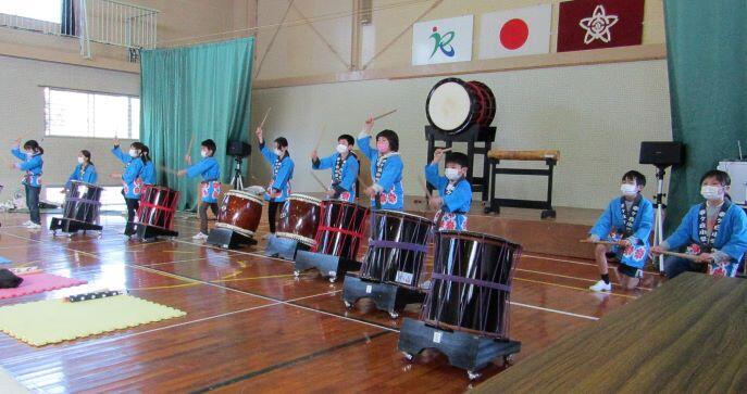 経験はとってもいい経験だと思います。この先も機会があったら太鼓に接して欲しいと思います。演奏後、6年生が児童を
