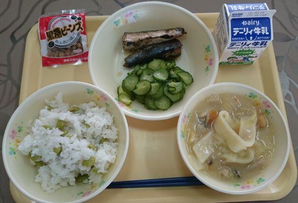 書けていると思います!(^_^)v そして、この日の給食です。メニューは「節分献立」ということで、あお豆ご飯、