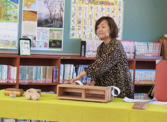 さて、この日は外部から女性をお招きして、お話とオルゴールの演奏を聴きました。学校や福祉施設等を訪問し、