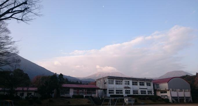 1月31日(日) 29日に行われた選抜高校野球大会の出場校選考会で、宮崎商業高校の52年ぶり3回目の出場が決まりました。52年ぶりというと前回は昭和44(1969)年になります。宮崎商業と言えば、昔、広島カープで活躍した水谷選手を思い出しますね。宮崎商業高校の選抜での初勝利を期待します!この日の朝も前の日に続いて冷え込み、学校の朝の気温は氷点下でした。この日の幸ヶ丘三岳です。月がきれいでしたので、月を入れてみました。いかがでしょうか?(*^_^*)