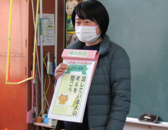2月の目標は「話している人の考えを◯◯聞こう」で、隠してあるところについて、具体的に話してくださいました。