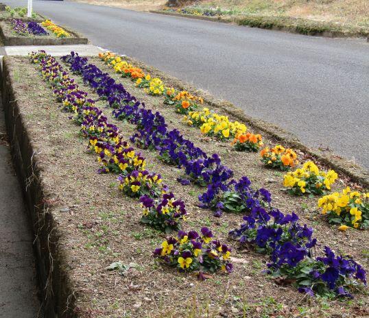 冬なので、風景の色は暗色が多いのですが、玄関付近の花壇には花がたくさん咲いていて、きれいです。