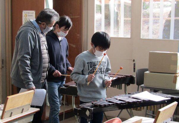 音楽室では打楽器の練習です。簡易木琴ではなく、本物を使いました。あれっ?またしても見慣れない物が・・・。