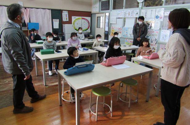 給食準備や給食の様子も見ていただきました。もちろん、一緒に給食を食べながらです。最後に子どもたちを代表して