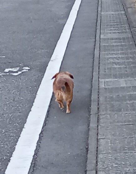 この日の朝には、見守り犬が来てくれました。体育館前に行ったり、道路を歩いたりしながら見守ってくれました。
