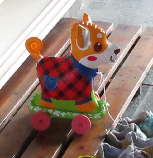 学校までひもをつけて引っ張ってきたようです。(^_^) 保護者の方が小さい子を連れて学校に来ていたのでした。