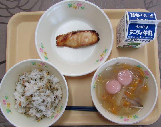 最後はこの日(17日)の給食です。この日は【こばやし地産地消の日】で、メニューは 麦ご飯、豚肉の柚味噌焼き、