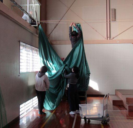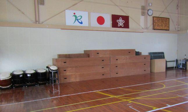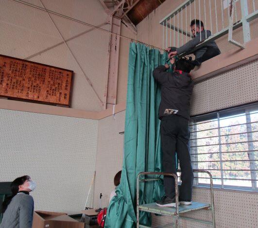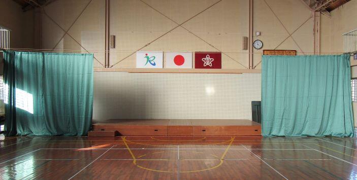 ステージと幕をつけて、学習発表会の舞台が完成しました。幕は舞台袖にもなります。先生方、お疲れ様でした。(*^_^*)