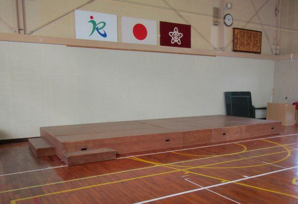 まずはステージです。本校の体育館にはステージがないので、大きな台を7つ組み合わせてステージをつくります。