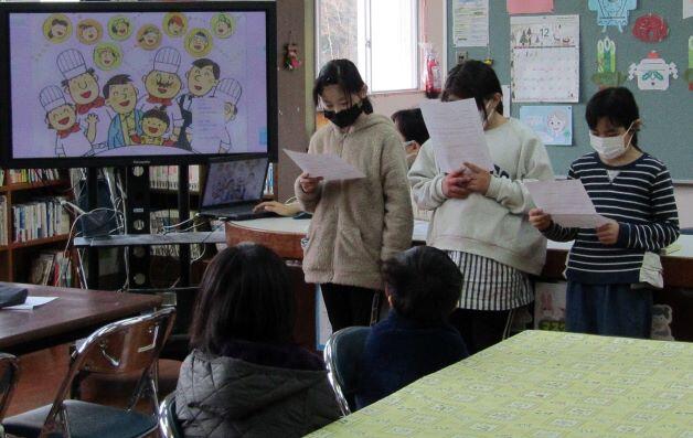 この日の1校時は学習発表会の練習でした。合唱曲を歌った後、全校劇の読み合わせをしました。