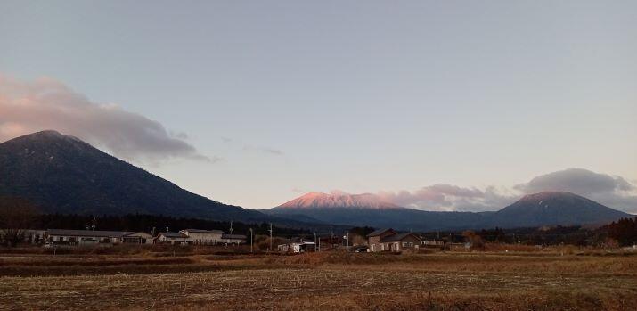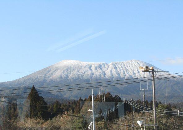 教室から見る幸ヶ丘三岳です。特に韓国岳はキラキラしてとってもきれいでした。(^_^)