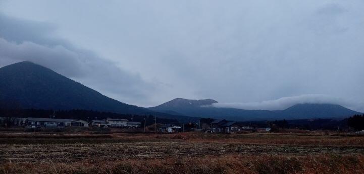 雪にはなりませんでした。でも幸ヶ丘三岳はご覧のとおり、雲がかかり、夷守岳の裾野しか見えませんでした。