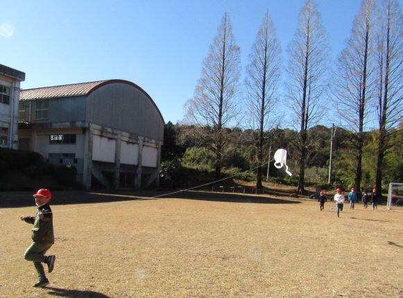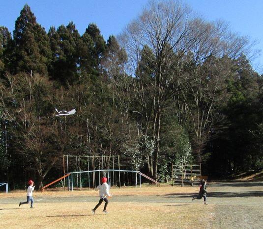 風向きが安定していなくて、なかなか高く上がりませんでした。しかし、子どもたちはたこを追いかけておおはしゃぎ!
