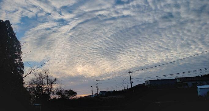 日中は快晴なのですが、やはり、朝は雲が多かったです。この日の朝日と空の様子です。すじ雲?うろこ雲?(-_-)