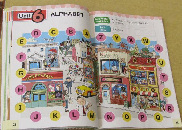 3・4年生の活動です。アルファベットの学習でした。アルファベットの歌を聞きながら覚えました。